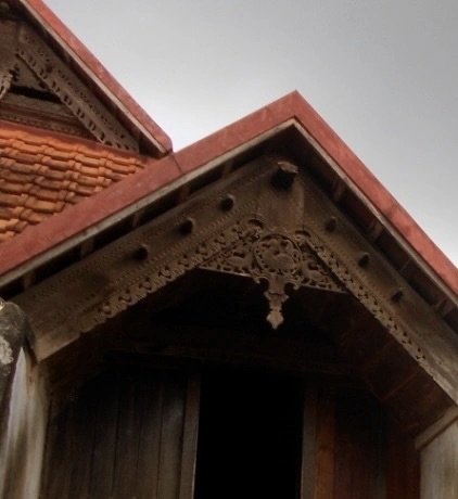 The gable in Kerala, while extensively used around the world, has distinct elements, notably the large arrow-like keystone in the middle, with a mix of global adornments and native elements.