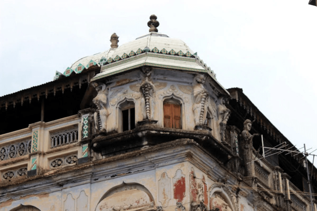 Both Thirumalai Nayak Palace and the Rajasthani palace shown above use lime plaster for the superstructure, everything above the columns- the difference comes in the choice of paints – high quality natural paints vs artificial chemical paints. The choice for which is not clear in Tamil Nadu’s case – though seeing the green example in the top, I’d push for that ideal.