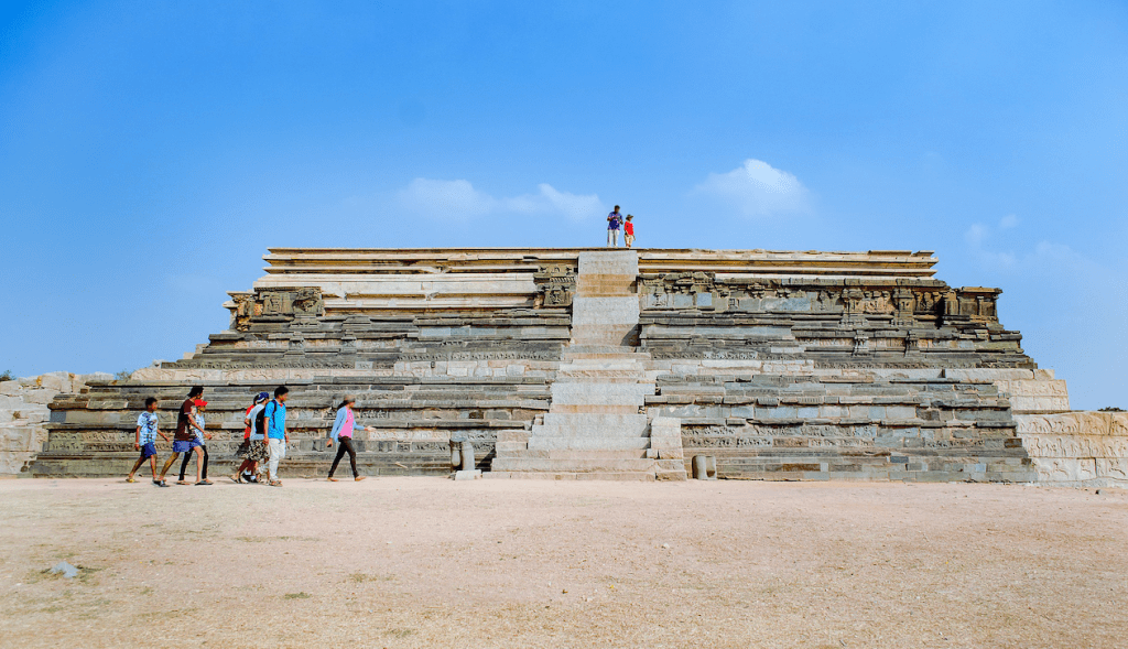 In general, Hampi has many innovative granite structures for citywide development that still survive, that we could model off of and evolve with, in Madurai. See the Mahanavami Dibba (throne platform) in Hampi, which has granite as a base platform with a layered green-brown stone in front, possibly of Chloritic Schist or Green Granite: