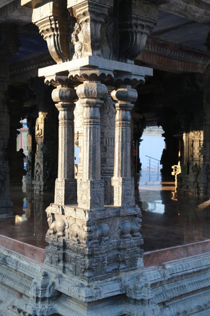 As shown, it’s more finely carved than many granite sculptures, as it’s softer and is able to be intricately carved as such. Soapstone is used in the Pudhu Mandapam as well, as seen below, above the pillars, and possibly the pillars themselves: