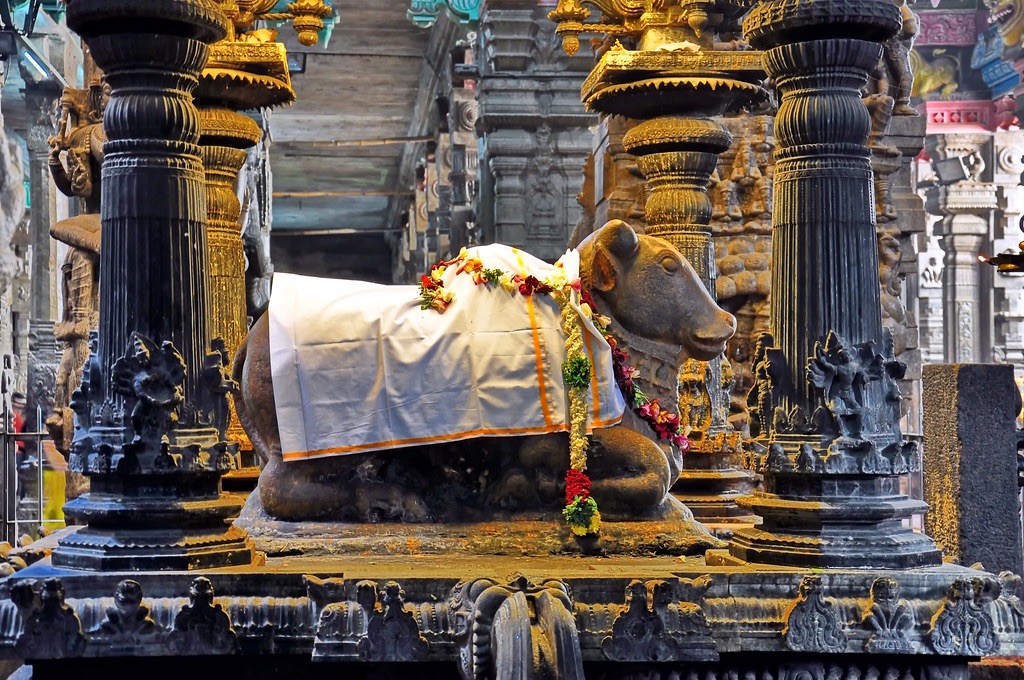 Furthermore, we should expand the use of soapstone, for intricate temple sculptures, mandapas, as well as inner palace ornamentation. Here is a use of soapstone in the Madurai Meenakshi temple, for the Nandi Mandapa, with carved granite interiors of the temple as the background: