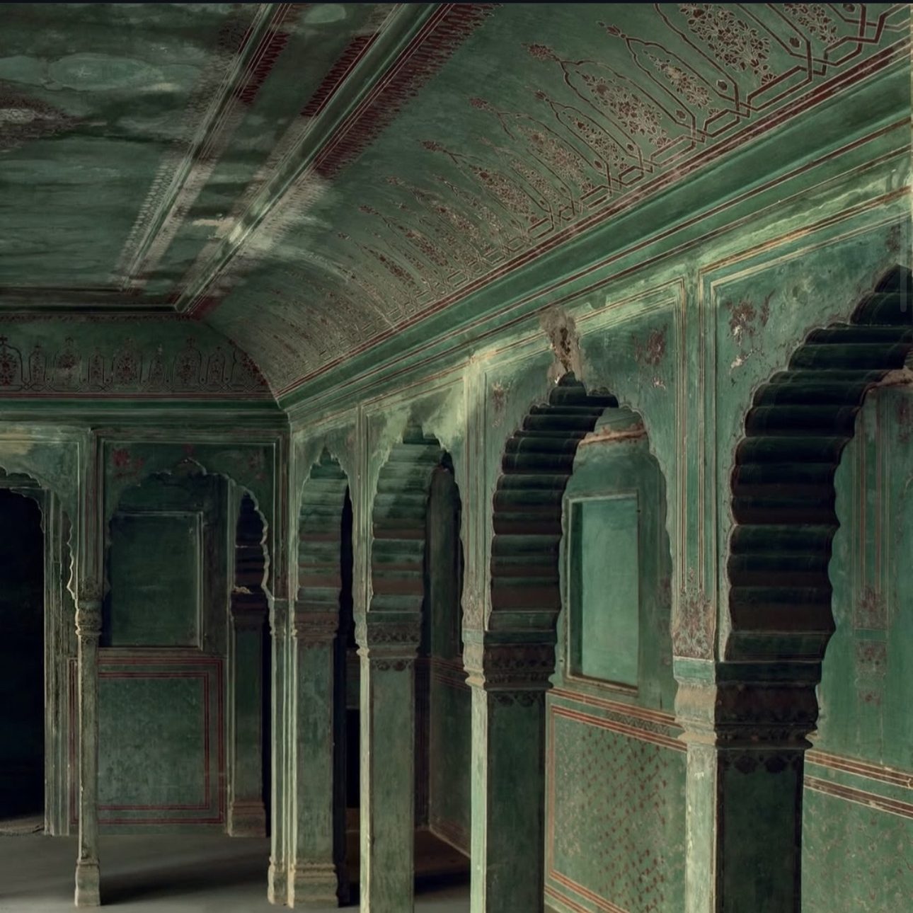 One large part, that’s evident in Thirumalai Nayak Mahal, but also throughout Tamil Nadu, in my research, is the use of artificial paints – which, may not have the same appeal as natural paint on lime plaster – which is a harmonious combo, shown in palaces in the north, as shown below: