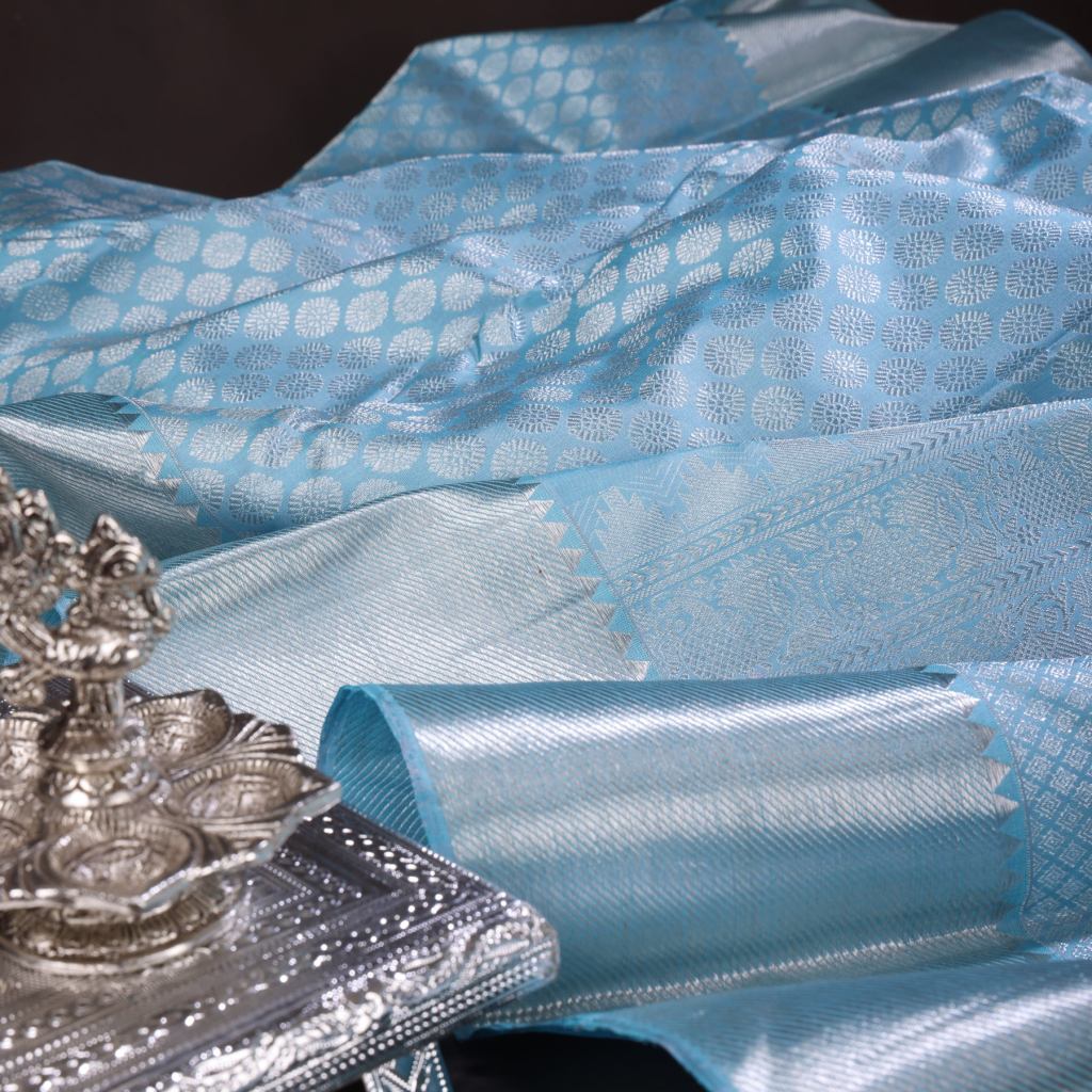I propose we expand the use of sterling silver, silver thread and platinum jewelry to the South Indian school of art, just as it’s silver sculpture and silver thread is used here in this kanjivaram image from Kanakavalli Edit: