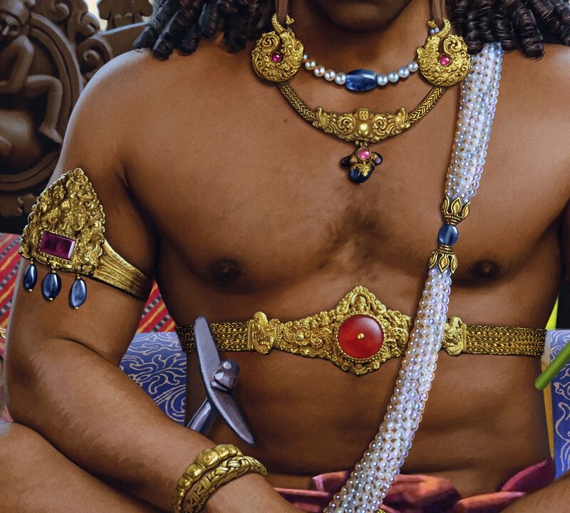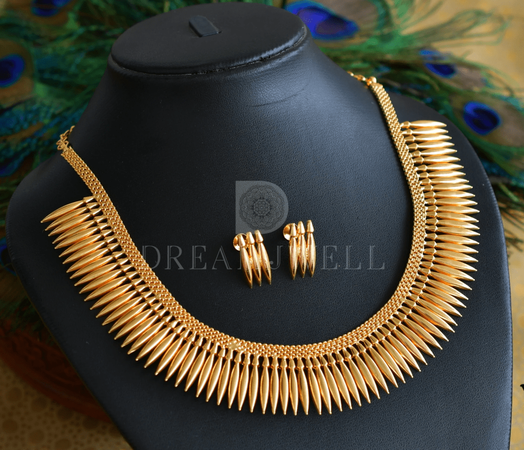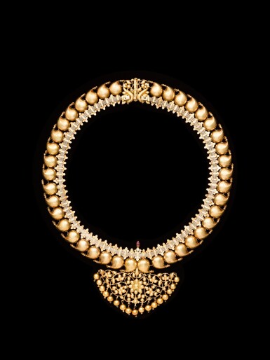 We can do the same with the traditional manga-malai, or ‘mango necklace,’ shown below as the solid gold back of a ruby-studded one: